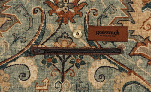 • Fully lined, Browns, tan, teal, green Aztec design