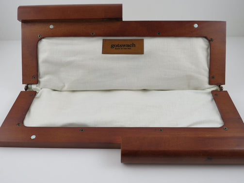 • Wood handle on hinges, magnetic closure
