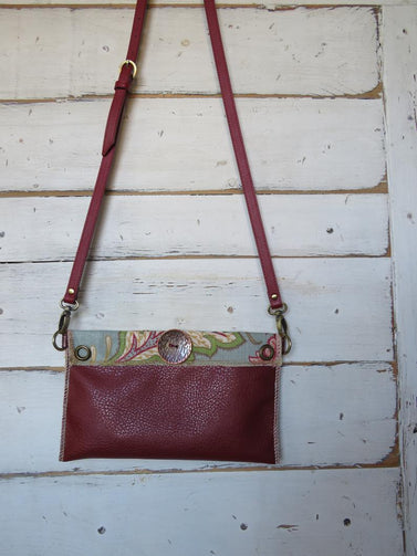 Each purse is one-of-a-kind, designed, and sewn one by one with lots of love. We use repurposed fabric swatches and remnants which would have normally been thrown into a landfill. We have four styles and two more on the way.
