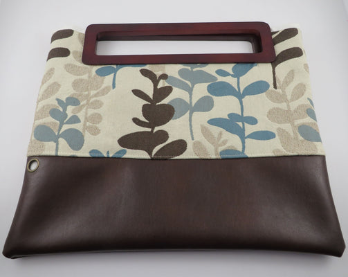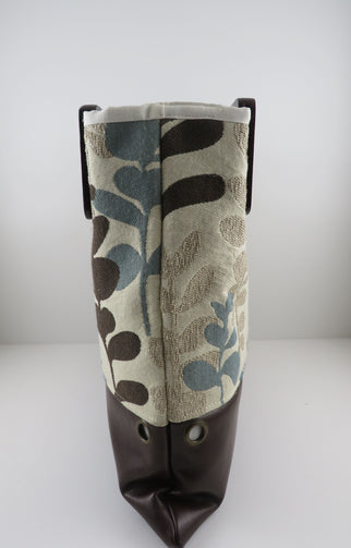 • 16" x 13 1/2" Cream with blue, tan and brown mod flowers