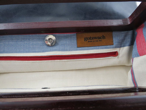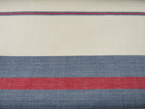 - Fully lined, ivory, blue, red stripes