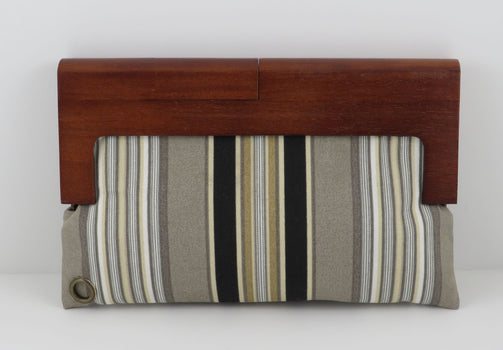 Each purse is one-of-a-kind, designed, and sewn one by one with lots of love. We use repurposed fabric swatches and remnants which would have normally been thrown into a landfill. We have four styles and two more on the way.