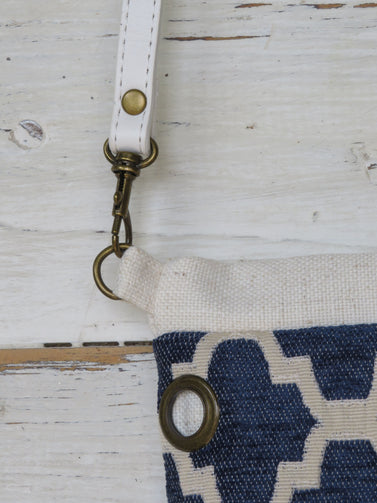 - Fully lined, Ivory, navy pocket with a hot-pink zipper