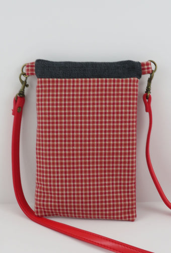 - 5" x 8" Red and white check with dark, midnight grayish-navy